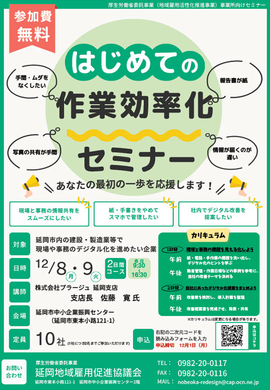 対象:延岡市内の建設・製造業等で現場や事務のデジタル化を進めたい企業