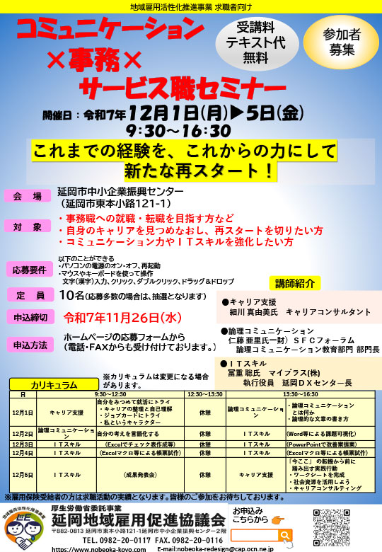 ※雇用保険受給者の方は求職活動の実績となります。皆様のご参加をお待ちしております。